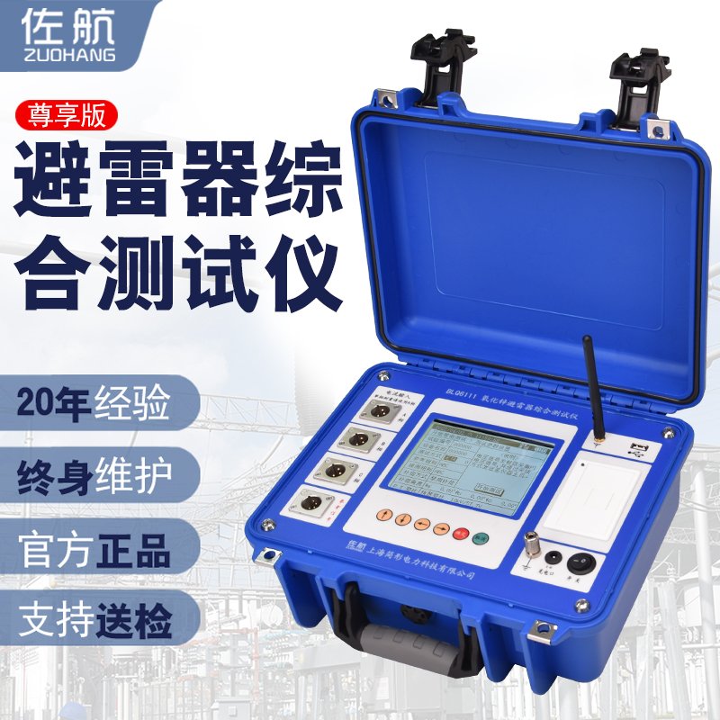 氧化锌避雷器综合测试仪用于检测氧化锌避雷器(MOA)的各相电气性能。该仪器适用于各个电压等级的氧化锌避雷器的现场带电检测以及停电状态下试验室做的出厂和验收试验。通过测量全电流及阻性电流等参数,可以及时发现氧化锌避雷器内部绝缘受潮和阀片老化等危险缺陷。