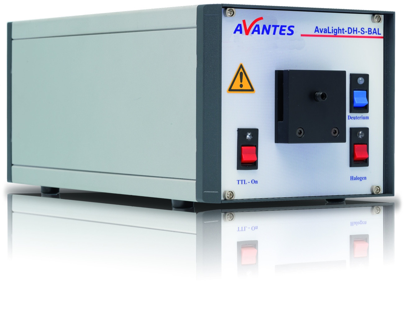 AvaLight-DH-S-BAL的输出是一个高效连续光谱,稳定的谱段是紫外、可见和近红外,从215nm到2500nm,还包括内置的TTL快门,可安装50x50x5 mm 滤光片的支架。TTL快门可以通过AvaSpec光谱仪进行控制,在AvaSoft-FULL软件中可以自动存储暗背景(需要额外订购IC-DB26-2线)。AvaLight-DH-S-BAL光源有一个带可调焦透镜组的SMA905接头和光纤和光纤束连接,保证很大的光纤耦合效率。对于所有的氘灯光源我们都推荐使用抗紫外光纤(-SR,参见本产品手册的光纤及探头部分)。对于大芯径达600μm的光纤AvaLight-DH-S-BAL 都可以得到高质量的输出。