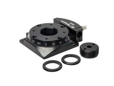 RS65旋转平台具有1.063“ -20的螺纹中心孔, 可使用随附的扣环牢固地安装1.0英寸光学元件,例如波片和偏振片, 在PRA-05适配器中可固定安装0.5英寸光学元件, 抑或在CH-0.5支架中可固定安装0.5英寸分束立方体。 格兰激光方解石偏振片Glan-Laser Calcite Polarizers也可以直接穿过螺纹孔。 RS65安装座还带有实心孔径插入件RSA-1TIRSA-1TI, 它将提供一个居中的通孔,以便在轴上安装由光学杆支撑的光学组件。 | |