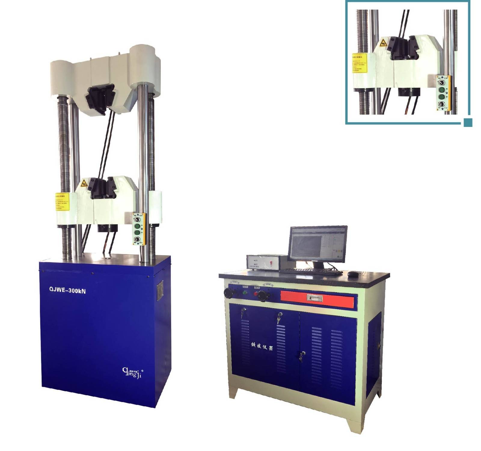 本机采用油缸下置液压钳口,试验空间可调整。应用微机电液伺服(比例)全数字