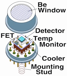 热电制冷器同时对硅探测器以及场效应晶体管(为电荷敏感前置放大器提供输入)进行冷却。对场效应管的冷却能减少它的漏电流,同时能增加跨导(transconductance),二者都能减少系统的电子学噪声。