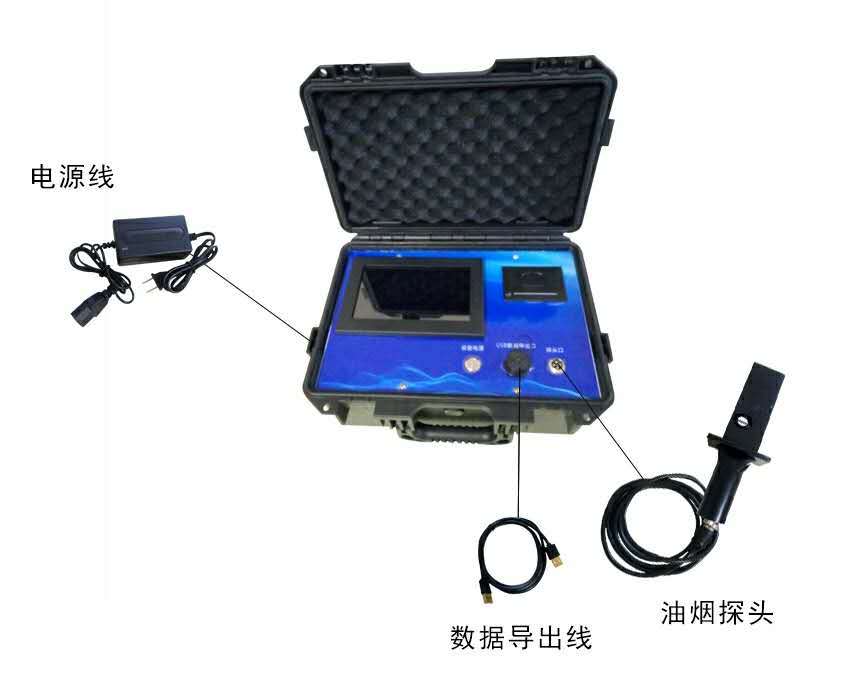 主机+附件箱(油烟探头*1、数据线*1、探头连接线*1、充电器*1、打印纸*5、说明书合格证保修卡*1)