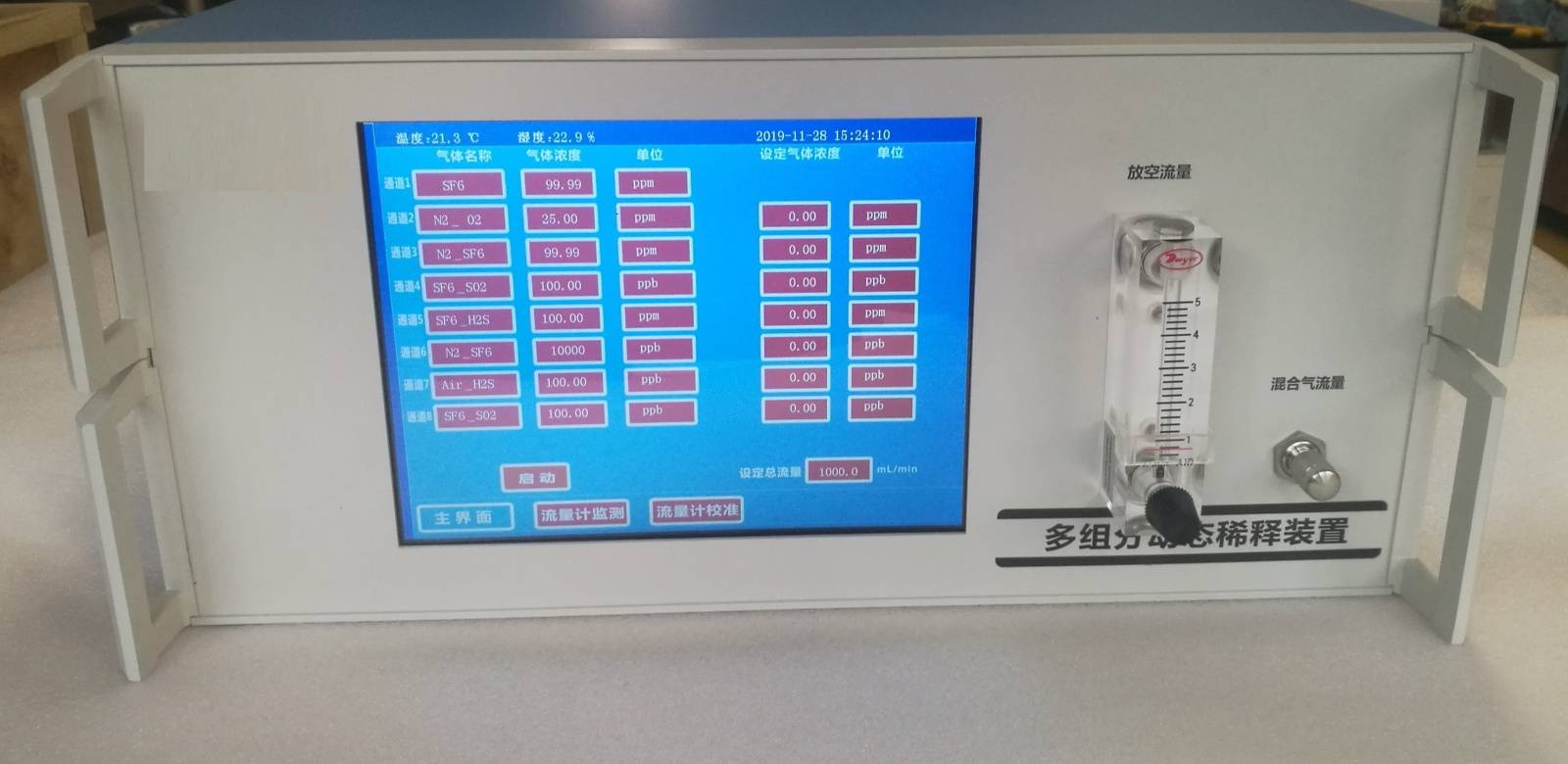 多组分动态稀释装置是为气体分析、测试类仪器的标定、校准和检测的需要而开发的新产品。它可以用来稀释多组分的标准气体,也可以直接用于气体测试仪器的校准、检测和分析方法的检验,尤其适用于可燃气体报警器、气体检漏仪、有害有毒气体分析器及其他气体分析仪的标定、检定、测试、校准和气体传感器的性能评价。