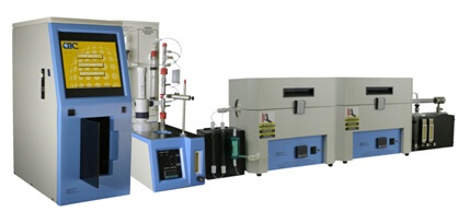 样品被称重后,放入陶瓷燃烧皿上,加上五氧化钒助溶剂,并放入温度可达1050oC的高温燃烧炉。样品在助溶剂、氧气氛围和高温环境下迅速燃烧,形成SO2和SO3平衡的混合气体。这种混合气通过氮载气运送到温度为825oC的第2个燃烧炉,并通过还原性铜,定量地将SO3转化为SO2,*后SO2被运送到CM5014S分析仪处,在这里SO2和H2S会自动进行库仑滴定而被测量