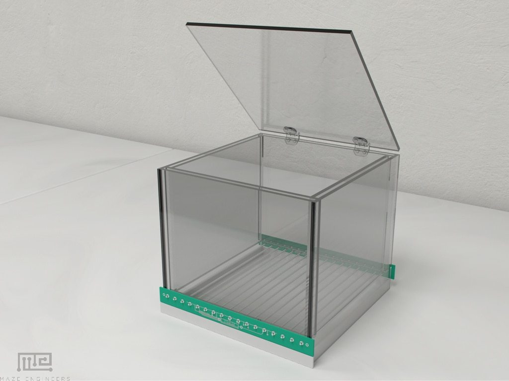 实验箱体由箱子和控制单位构成。箱子中配备有电击功能的底板,系统中装有计时器,可设置为定时/随机/持续/间隔电击。本系统可根据情况扩展。