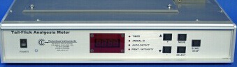 哥伦布公司Tail-Flick痛觉丧失测定仪可以非常方便地精确检测小鼠和大鼠痛觉敏感性,并具有很高的重复性。仪器安装了开关控制的灯作为热源。灯位于小动物的下方,使得空间区域不狭小,灯连续照射动物的尾巴持续提供热量。开关控制系统可以避免出现灯预热而导致的温度变化。 Tail-flick检测可以使用脚控开关或自动探测检测电路来完成。不管使用何种控制方式,都可以解放实验者的双手来操作动物。实验动物通常情况下都受限制的,其尾巴放到仪器顶部的痛觉检测凹槽中。 打开灯的开关后,会有一束强光照射到动物的尾巴上,会导致尾巴上某些点的不适,这时候小动物会甩动尾巴将其从光束上移开。在手动模式下,配置脚控开关;在自动模式下,光电探头能探测小动物尾巴的运动,并启动计时钟停止和开关的关闭。从开灯照射到动物反应的总时间,会在面板的显示器显示上。数据可以通过任何Epson兼容打印机直接打印,也可以通过RS-232端口存储到PC/AT兼容电脑中。 主要特点/技术指标 自动或手动检测甩尾响应 手动控制时脚控开关 面板LED时间显示,精确度为0.1秒 数据可输出到任何一标准Epson兼容的打印机 时间解析度:0.1秒 测试区间:48cm x 33cm 灯密度设定数目:25 订货信息 1430 Analgesia Tail-Flick Apparatus 1430-1 Analgesia Tail-Flick Apparatus Printer Output Option 1430-2 Analgesia Tail-Flick Apparatus RS-232 Output Option 1431 Analgesia Tail-Flick Replacement Bulb |