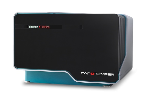 通过 TRIC (Temperature Related Intensity Change) 温度依赖的荧光强度变化的方法,定量分析分子间相互作用,测定配体与靶标分子结合的强弱,这是一个被广泛使用的方法。实验中,我们对靶标分子进行荧光标记,并使其与配体分子混合。随后,通过激光,在溶液中制造一个精确而简单的温度变化,如果靶标分子与配体分子相结合,荧光信号强度的变化会被放大和即时记录。并以配体浓度为横坐标,荧光值为纵坐标作图,从而获得平衡解离常数 Kd 值。