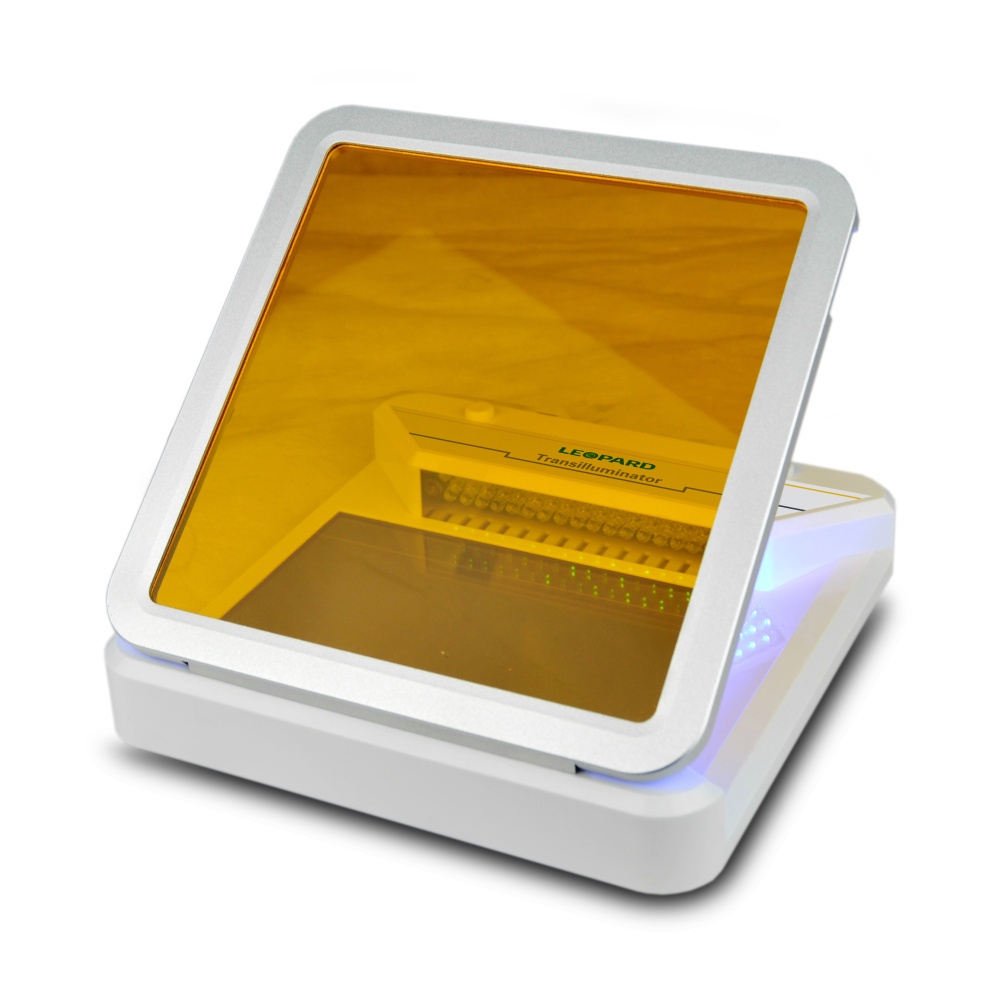 3、全尺寸透明滤光片盖提供了**的观察方式,操作观察更安全,与传统紫外光源相比可见的蓝光要安全很多,首先免去了紫外线对人体皮肤 和眼睛造成的辐射伤害,其次也不用担心长时间照射导致核酸片段断裂、交联、替换等损害,使切胶与操作无需佩戴安全眼镜或者其他防护设备,操作更加方便安全。