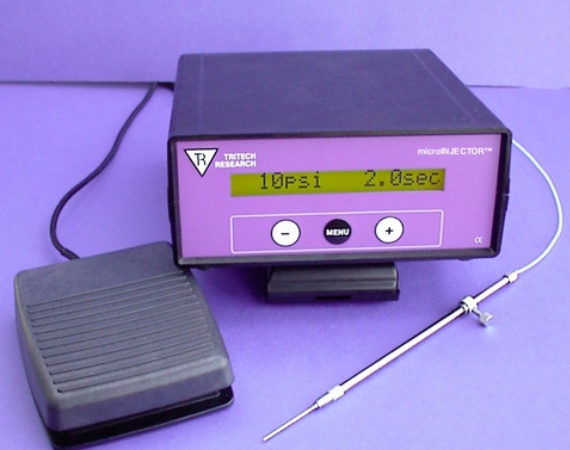 基本的显微注射程序是带显微镜针尖的中空微针填充有液体,刺入到目标,然后暂时加压以便注入一些液体到目标。 决定注射量的变量是压力,时间,液体的粘度,和针开口的直径。来实现以上这些的简单实用的系统,是我们MINJ-1显微注射器?(标准模式)或是我们的MINJ-D全数字多重压力显微注射器?; 虽然MINJ-1,和它的配件线,帮助许多科学家轻易地完成显微注射,一些更复杂,更高水平的精度和可重复性的实验和程序要求,这可以用MINJ-D更好地完成。但是一些实验需要更快的响应时间,我们的MINJ-FLY的响应时间可以低至10毫秒。