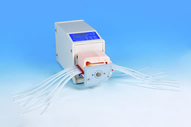 BT100-8八通道数显恒流泵 120×310×120 输出通道:八通道(转速数显) 输出流量:8×(0.3-5000) ml/h 输出压力:≥2.5 kg/cm2