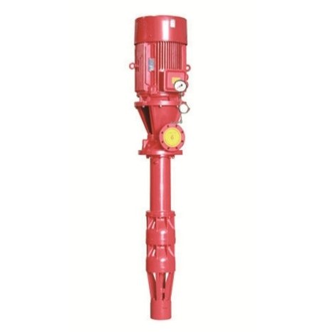 长轴深井消防泵的工作原理:电机通过轴带动在液下工作的叶轮旋转,流体通过叶轮获得能量后经空间导叶转换方向,沿着内外管之间的流道,竖直上升,经出水弯管换成水平方向流出。