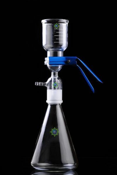 过滤瓶包括三角集液瓶(1000ml或2000ml)、砂芯过滤头、过滤杯(300ml或500)以及固定夹。
