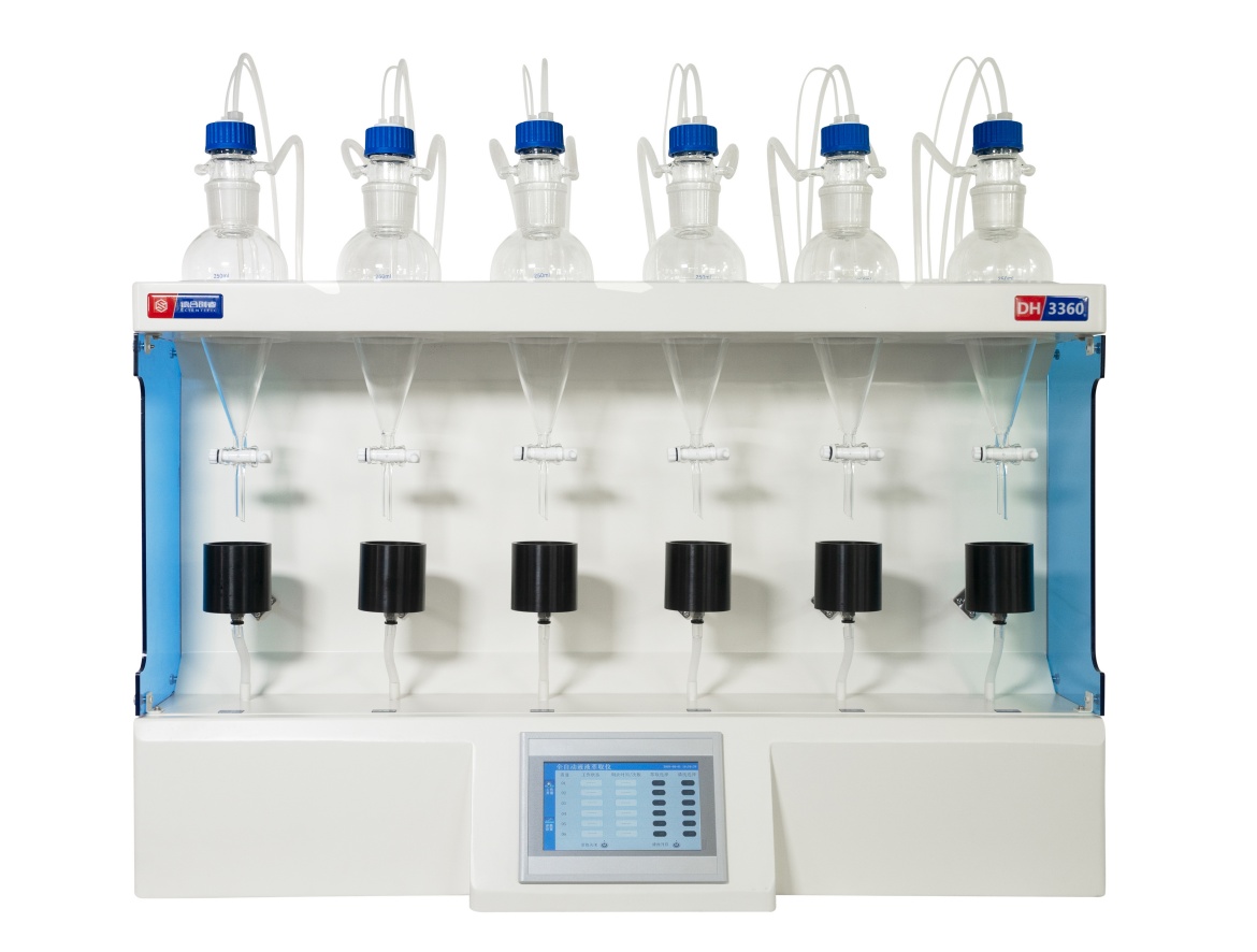 为解决以上问题,德合创睿推出两种类型的全自动液液萃取仪,机械震荡型DH3160和气液混合型DH3260、DH3360(可自动加试剂)。仪器采用7英寸液晶触摸屏,智能程序设置,一键启动,自动萃取,废气废液统一处理等实现萃取实验的自动化。在提高萃取效率的同时,有效避免了人与有毒气体的接触。
