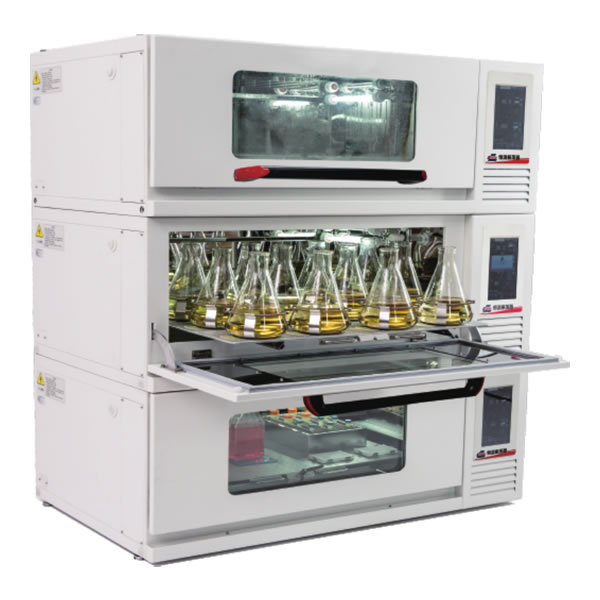 本恒温振荡器使用三轴偏心平衡机芯,稳定可靠,使用寿命长。转速控制系统带有速度终端反馈系统,使机器保持高精度振荡。PID控制技术与模糊控制技术的结合与创新,实现了温度范围内的高精度控制。应用变频压缩机制冷,效率高,能耗小,制冷更精确,控制更稳定。可12段编程运行,实现同一种样品在不同环境条件下和不同运行时间来自动创造所需求的环境。可选配先进的Wifi监控系统,可多台手机同时远程无线监控同一机器,及时获取无进气等报警信息以快速处理紧急情况,安全保护培养细胞等。适合中试到大试。