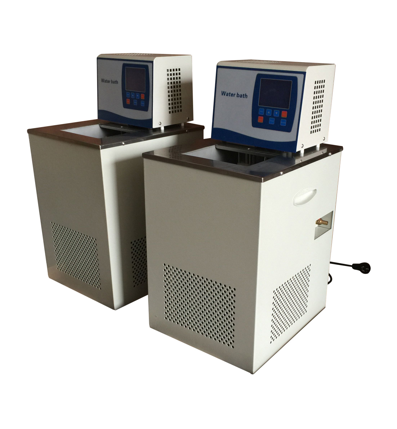 外循环:通过泵的循环能力,利用出水口将保温软管与外部设备连接,形成封闭回路,流回设备进水口,是将槽内恒温介质外引,建立外部恒温场。内循环:通过泵对槽内液体介质的循环吞吐,增加槽内温度的均匀性,减少温度波动。 循环水恒温的应用领域: 生化领域:旋转蒸发仪、阿贝折光仪、旋光仪、原子吸收、ICP-MS 、ICP、核磁共振、CCD、生物发酵罐、化学反应器(合成器)等。材料领域:电镜、X射线衍射、X荧光、真空溅射电镀、真空镀膜机、ICP刻蚀、各种半导体设备、疲劳试验机、化学沉积系统、原子沉积系统等。医疗领域:超导磁共振、直线加速器、CT、低磁场核磁共振、X光机、微波治疗机、医用冷帽、降温毯等等。物化领域:激光器、磁场、各种分子泵、扩散泵、离子泵以及包括材料领域。使用的各种需水冷设备。