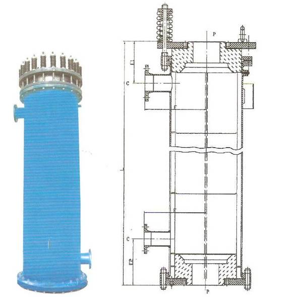 TK型为圆块式换热器,石墨块的固定,不是通过钢外壳的传递,而是使用拉杆来固定上下盖板。其**使用压力为0.7MPa,换热面积可达165㎡,可根据不同工作条件设计设备尺寸。