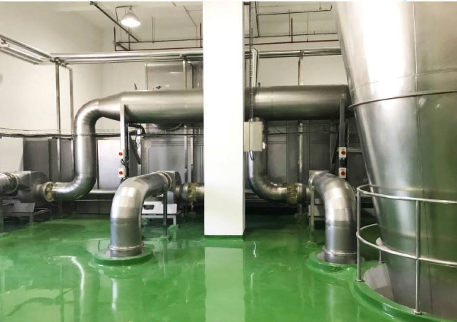 以现代干燥为台湾某食品科技公司设计的喷雾干燥设备为例,其尾气排放温度为100℃,需要处理的尾气风量为60000m/h。若没有安装此尾气热回收处理装置,则该尾气中大量的热量将会直接排放到大气中而被浪费。安装了该尾气热回收处理装置后,一年为企业节省了200多万的能源成本。