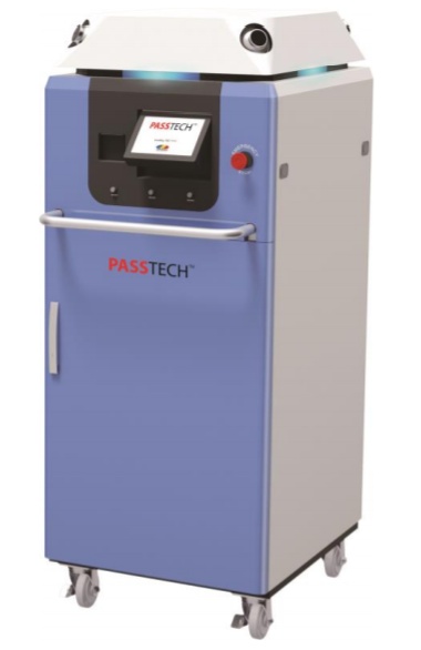 PASSTECH®牌过氧化氢灭菌技术区别于传统汽化技术,通过设备浓缩装置,将35%的过氧化氢溶液浓缩至60%浓度再进行汽化灭菌,能够更加高效杀灭环境微生物,同时通过浓缩,预先将水分除去,避免了干雾灭菌和传统汽化灭菌方式导致的空间湿度提升大,容易发生环境腐蚀的风险。采用更加先进、高效的汽化灭菌技术广谱的杀菌效果,对芽孢达到6个对数的杀灭满足大空间灭菌需求 具备良好的环境兼容性,对电子产品等敏感电子元件无影响四、技术参数灭菌空间: 300m3验证: IQ/OQ/PQ电源: 220V、50Hz外形尺寸: 600×723×1516mm重量: 154Kg