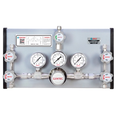 应用于双侧低压气体钢瓶减压供气,通过两侧手动切换,可实现连续供气,带吹扫功能。