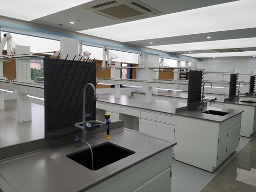 2.全钢试剂架:采用1.0-1.2mm厚(镀锌钢板/冷轧钢板/电解钢板/不锈钢板),表面经过高温环氧树脂静电粉末喷涂,层板为基材折弯焊接成型,可任意调节位置,可配载中央吊柜等其他特殊仪器装备功能,能布置气体管路、电源、水源相关配套设施;多功能线槽具有导线、挡水、多功能应用、整体美观、使用安全等功能特点。