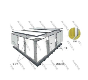 1)库板采用高密度聚氨酯整体发泡,保温性能优良,聚氨脂保温层均匀稳定密度大于40Kg/m3,导热系数小(λ≤0.021W/MK),美观耐久,库板面板有彩钢板、不锈钢板、轧花铝板多种面板供选择。