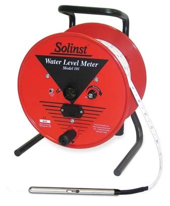 | 便携式电子水位尺——101型 静态水位尺,广泛用于地下水的监测。由传感器、标尺带绞盘和便携包组成。操作简单、维护方便。使用时仅需将标尺带缓慢下放,当传感器遇到水时,绞盘上的蜂鸣器和指示灯开始发出提示,由此根据标尺带刻度确定水位。标尺带上有醒目的米制刻度(*小刻度1mm),方便阅读。此水位尺有多种类型可选,标尺带长度从10 m到1800 m不等。有两种传感器供选择。 | |