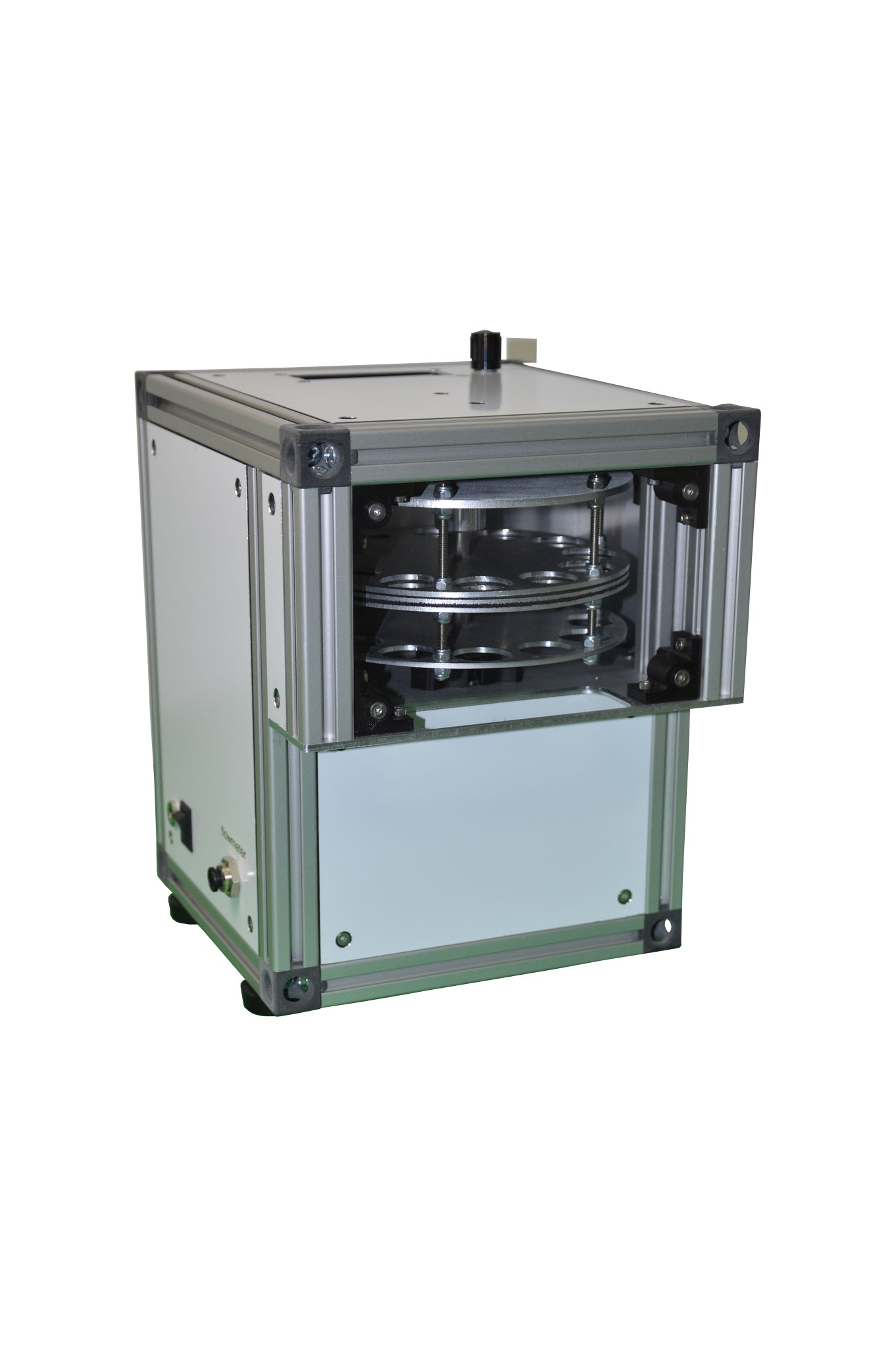 VSI EV-101真空气瓶制备器通过抽真空,填充氦气,然后接着制造一个真空。整个制备过程通过针头刺穿气瓶隔膜来实现。能容纳11个小瓶的转盘可以轻松实现批量制备。