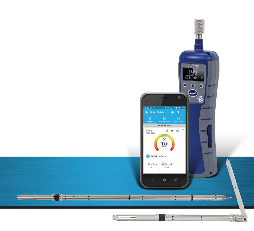 AirPro风速计是坚固紧湊、易于设置的高精度测量仪器,由风速计(AP500),移动应用软件,用户自定义测量探头(VT-S,VT-A,VTH-S,VTH-A和TH-S)以及功能组件套装(基础版,高级版,专业版)组成。