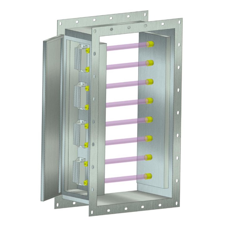 本产品配套使用于中央空调循环管道中,通过阀门法兰对接式镶嵌于相应可空旷位置中,设备运行后,内部离子管开始工作,采用双极等离子体静电场对带负电细菌分解与击破,经过处理的洁净空气大量快速循环流动,使管道内部环境保持在“无菌无毒”标准。