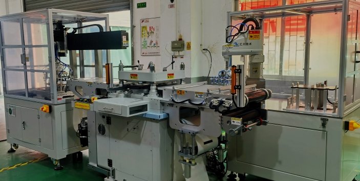 设备介绍:该设备结构简单,主要适用于锂电池正、负极材料和铝塑包装膜等材料的冲切成型,所用刀模为专业厂家制作。 工作流程:人工将装好材料的弹夹,放入上料机构,按启动按钮,机械手抓取材料,放入进料平台输送带上,然后输送带通过牵引机构将材料往前 输送,通过模切座前端感应电眼计算行程,进入模切座下方,输送带停止,刀模进行冲切,冲切完毕后,输送带继续往前送,直至伸出刀底座后方 出料平台上,停止输送,此时机器人开始抓取切好的材料,将其摆放到收料平台料盒内,进行下一步重复动作。输送带往前输送过程,废料自动流 出。