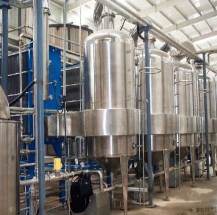 MVR强制循环蒸发系统由蒸发器、分离器、强制循环泵、蒸气压缩机组成。物料在管内,与管外蒸汽换热后分为蒸汽与浓缩液;蒸汽上升到分离器中,其除沫器分离出蒸汽中夹带的液滴,净化后的二次蒸气输送到压缩机,压缩后输送到蒸发器壳程作为加热蒸汽,实现二次蒸汽循环利用、连续蒸发。物料被浓缩成过饱和物料,结晶,晶浆从循环管路中用出料泵输出;母液 进入强制循环泵,在循环泵作用下进入蒸发器再蒸发,如此循环,不断蒸发浓缩、结晶。