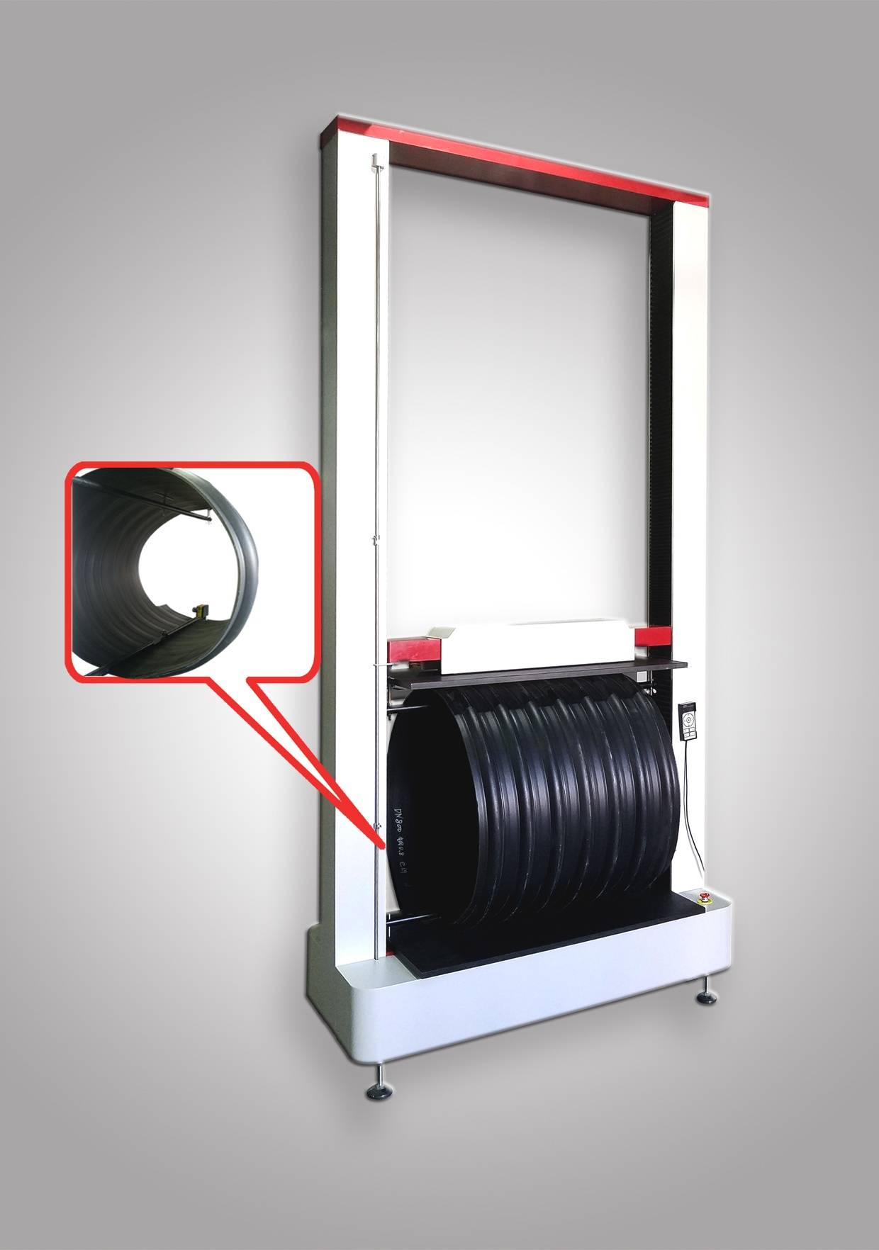 数,并对试验结果自动存储;安全保护:试样断裂、过载、过电流试验机自动保护并停机;多种功能:可做塑料管、玻璃钢管、夹砂玻璃钢管、PE/PVC/缠绕波纹管的环柔度试验并可
