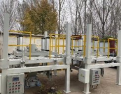 吨袋包装机,又称大袋包装机、吨袋打包机,是一种结构独 特,包装容量大的专 用散装物料包装设备,集重量显示、包装时序、工艺连锁、故障报警于一体。具有计量精度高,包装容量大,密封剂绿色材质,自动化程度高,生产能力大,适用范围大,操作简单,便于装缷等特点。有自动去皮,自动校零,灵敏度高,可联机联网实现网络化管理等功能。灌装时需要人工挂袋、套袋、给定信号后,设备可自动完成夹袋、灌装、计量,达到重量后自动封口、松袋的整个工作循 环过程。该设备是针对水泥、非金属矿粉、化工原料等粉体和颗粒状物料而设计,适用于建材、化工、粮食、饲料、矿产等行业。