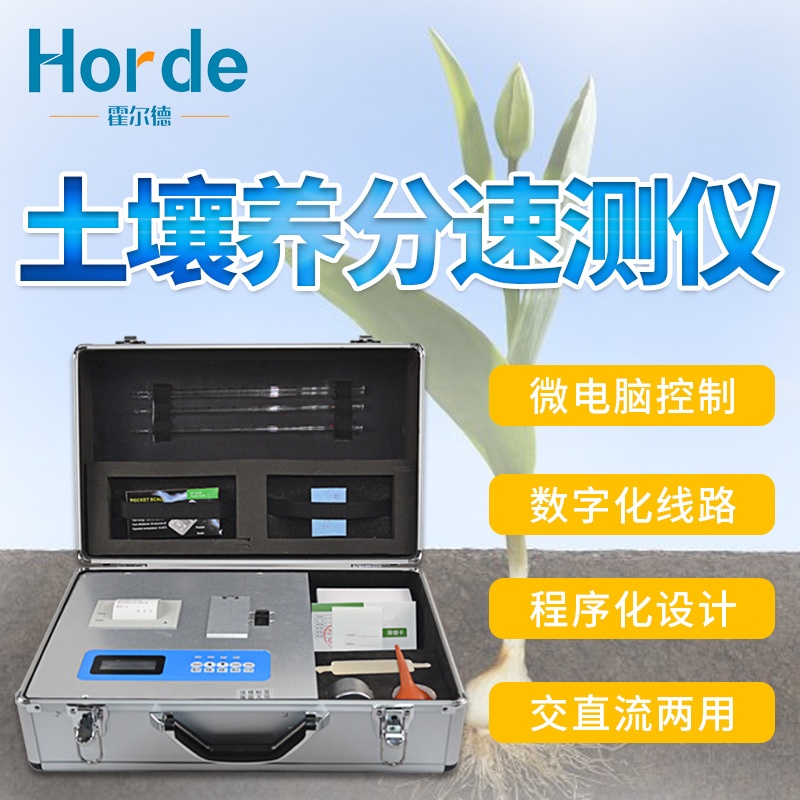 土壤养分速测仪特点:1、《机箱/药剂一体式铝合金机箱》设计,便于携带、坚固耐用,配套成品药剂。2、微电脑控制,数字化线路、程序化设计,液晶显示,交直流两用,可野外流动测试,大程度降低操作者的失误和劳动强度。3、分辨率:0.001,触摸式按键,内置热敏打印机,可打印测试结果。4、可检测土壤及化肥、有机肥、植株中的速效氮、有效磷、速效钾、全氮、全磷、全钾、有机质含量,土壤酸碱度,含盐量(扩展)。5、土壤养分速测仪采用高亮度 LED 灯作为光源,硅半导体作为信号接收系统,寿命长达10万小时级别。光源稳定,一致性好。6、比色槽部分采用单通道、双光路设计,无机械位移及磨损,光路测试定位精确,保证测定结果精度。