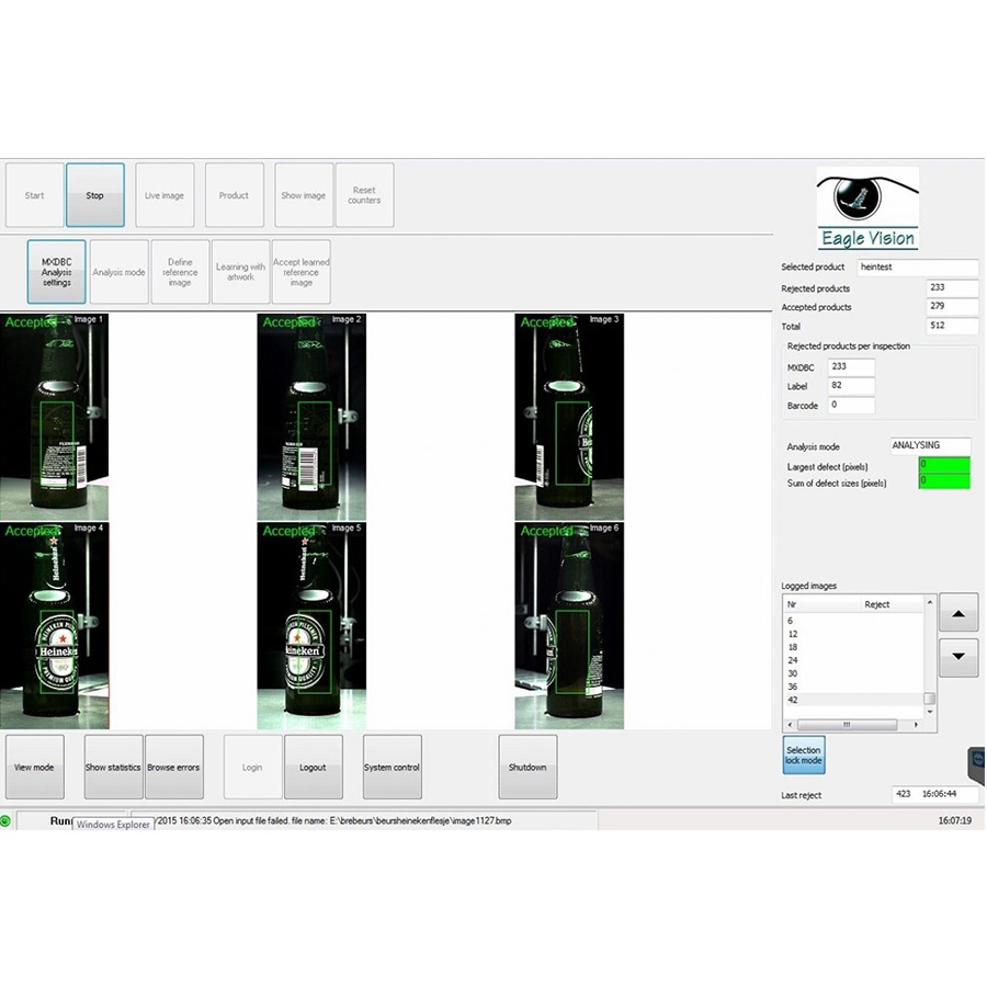 饮料啤酒瓶,大部分式采用贴标的模式进行装潢。根据多年与相关客户的交流,贴标工序会遇到一下问题:混表,倒标,破标,标签印刷质量(包括:色差,字体,条码等)。标签有两种方案,比较通用的方案是采用 360°外观检测系统。部分老旧的生产线因空间限制,则会采用在标机上定位安装检测相机的形式。
