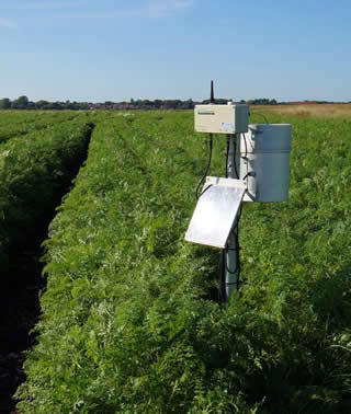 作物生长环境的区域小气候与作物病虫的发生息息相关,二者之间的关系一直是农业气象和植物保护研究领域的重要课题。通过区域气候条件和作物病虫害发生规律 的观测,建立相应作物的病虫害预警防治模型,具有极其重要的科研和生产意义。Agrms系统配置与病虫害紧密相关的空气温度、空气相对湿度、光照、雨量、 叶片湿度传感器,配置远程数据采集器A753 addWAVE GPRS RTU 或A733 addWAVE UHF。 其核心软件Adcon DSS software addVANTAGE Pro 5.4.包含Adcon公司在该领域与马里兰大学多位农业气象专家多年研究和应用成果,多种作物的农业气象病虫害预警防治模型,如苹果、梨(斑点病,梨火 疫病等);葡萄(白粉病,灰霉病,白腐病等);土豆或蔬菜(孢霉病等)等。
