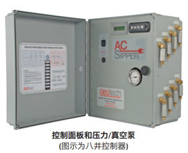 Geotech多井式碳氢化合物回收系统可使用交流电驱动(采用110-220伏单相交流电作为供电系统),亦可采用太阳能驱动。该系统具有极高的灵活性,可同时在多达八口井内安装运行。紧凑的结构和易于安装的特性使得该系统在众多类型场地得以使用。该系统采用独特设计,井下部署有用于输送碳氢化合物的气动泵,该泵与一个具有亲油/疏水吸油膜的撇油器相连。泵的运行分为真空循环和压力循环。当气动泵在真空循环时被回收油烃灌满后,压力循环启动,对系统加压并把回收的液体泵送至地面上的回收设施。该系统可以针对油的比重、黏度配有合适的撇油器进行工作。系统可以有效的从深达地下180英尺(55米)处回收各类碳氢化合物。