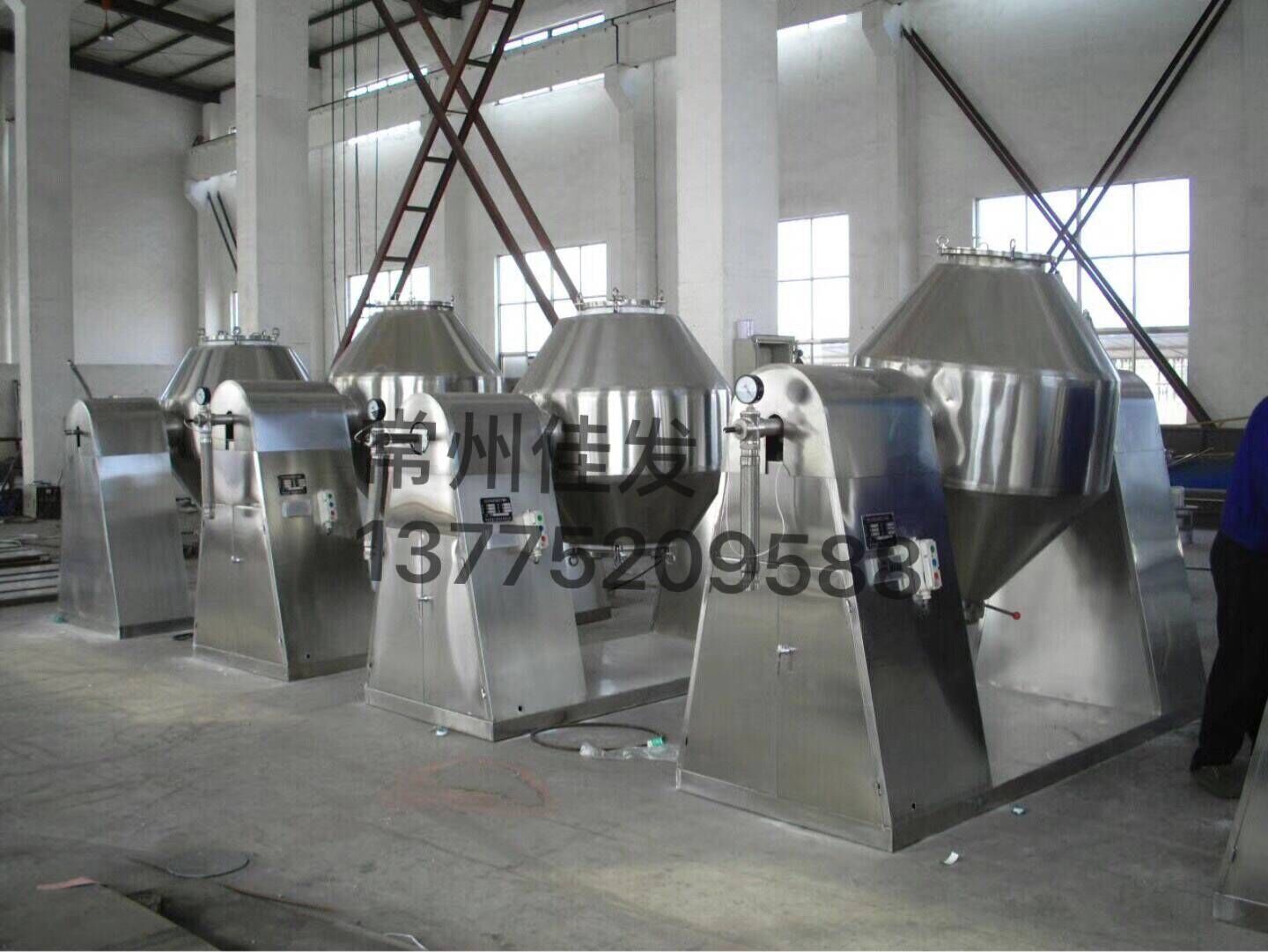 ★本机将粉末或粒状物料通过真空输送或人工加料到双锥容器中,随着容器的不断旋转,物料在容器中进行复杂的撞击运动,达到均匀的混合。