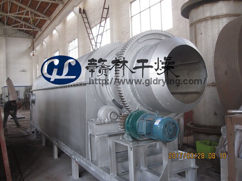 筒体带有链轮或齿轮,两端由托轮支撑,由调速电机通过减速机连接链轮或齿轮带动。简体材料可根据工艺要求选用不同的材料,并内设抄板。