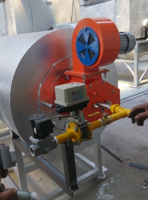 热风炉主要由燃烧机、燃烧室组成。相对于燃煤、生物质热风炉,该热风炉燃烧所产生的烟气干净,洁净度高,燃料燃尽率高,控制精度高。