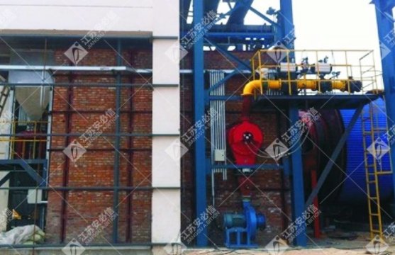 ASR系列流化床燃煤燃气热风炉技术简介:ASR系列流化床燃煤热风炉(简称沸腾炉),它的燃烧方式是燃煤经破碎成10mm以下的颗粒,经喂煤匀速地送入炉膛流化床上,鼓风机的高压风通过等压风箱从布风板上的众多风帽小孔射入炉膛,各方散射的风聚合成“气垫”托起煤粒及炉料呈流化态沸腾燃烧,煤粒和煤渣在高温状态上下腾跃,相互磨擦,碰撞及裂解,由小及大直至燃烬为止;这种燃烧具有空气与燃料接触面积大,相对运动速度高,燃料在流化床中停留时间长、燃烧速度快、燃烬率高、节能环保等特点。
