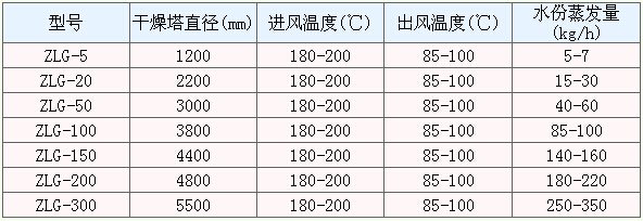 空气通过加热器加热后,以送风机进入干燥塔顶部的热风分配器,通过热风分配器后,热空气均匀的进入干燥塔内,并呈螺旋状运动。料泵同时将料液送至干燥塔顶部的离心雾化器,料液被喷成极小的雾状液滴,使料液和热空气接解的表面积在大增加,水份迅速蒸发,在极短时间内干燥为干品,干品在旋风分离器与空气分离,经旋风分离底部的集料旋蜗室由干燥的空气送至小旋风分离器分离,并收庥在收料筒,尾气经引风机排出。