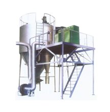 利用高速离心式雾化器使物料分散成雾状,与热空气充分接触完成瞬间可蒸发95-98%的水份,形成粉状成品,特别适用于热敏性物料的干燥;