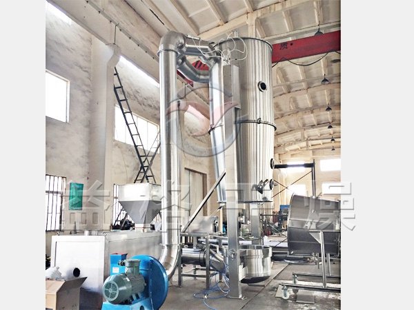 物料粉末粒子,在原料容器(流化床)中呈环形流化状态,受到经过净化后的加热空气预热和混合,将粘合剂溶液雾化喷入,使若干粒子聚集成含有粘合剂的团粒,由于热空气对物料的不断干燥,使团粒中水分蒸发,粘合剂凝固,此过程不断重复进行,形成理想的、均匀的多微孔球状颗粒。