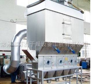 沸腾干燥,又称流化床,它是由空气过滤器、加热器、沸腾床主机、旋风分离器、布袋除尘器、高压离心风机、操作台组成,由于干燥物料的性质不同,配套除尘设备时,可按需要考虑,可同时选择旋风分离器、布袋除尘器,也可选择其中一种,一般来说比重较大的如冲剂及颗粒物料干燥只需选择旋风分离器,比重较轻的小颗粒状和粉状物料需配套布袋除尘器,并备有气力送料装置及皮带输送机供选择。