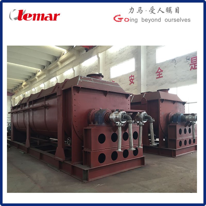 湿物料从离心机出来后直接进入真空耙式干燥机,物料在搅拌浆的作用下匀速往前运动。主机夹套通入蒸汽加热。热量由主机内壁传递给腔内的物料,湿物料吸收了热量后迅速进行热质交换,溶剂迅速蒸发出来,由顶上的真空管抽出去,夹套传入的热量主要用于: