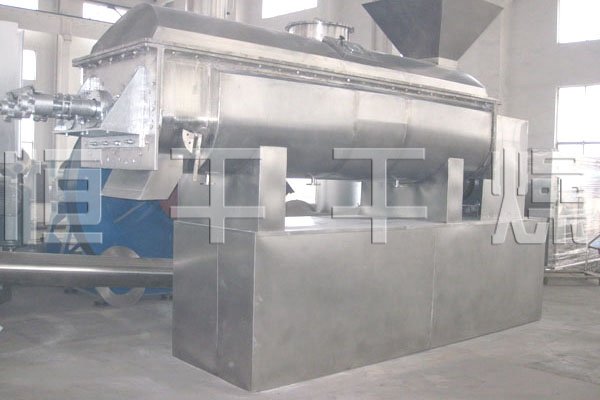 浆叶干燥机已成功地用于食品、化工、石化、染料、工业污泥等领域。设备传热、冷却、搅拌的特性使之可以完成以下单元操作:燃烧(低温)、冷却、干燥(溶剂回收)加热(融化)、反应和灭菌。搅拌浆叶同时又是传热面,使单位有效容积内传热面积增大,缩短了处理时间。楔型浆叶传热面又具有自清洁功能。压缩--膨胀搅拌功能使物料混和均匀。物料沿轴向成"活塞流"运动,在轴向区间内,物料的温度、湿度、混合度梯度很小。用导热油做热介质浆叶干燥机可完成低温燃烧工作。如:二水硫酸钙(Ca2SO4·2H2O) 燃烧转化为半水硫酸钙(Ca2SO4·1/22H2O)。碳酸氢钠(NaHCO3)经煅烧转化为纯碱(Na2HCO3)等。通入冷却介质,如水、冷却盐水等即可用来冷却。如:使用于纯碱行业的浆叶式凉碱机,取代老式的空气冷却凉碱机,节省了能源及尾气处理设备,降低了操作费用。干燥,设备*主要的功能,不使用热空气,使溶剂回收、能源消耗、环境控制处于易处理的理想状态。对需回收溶剂、易燃易氧化热敏性物料尤为适应。已广泛用于精细化工、石化、染料行业。轴向区间内,温度、湿度、混合度的均匀性,使得设备可用来加热或融化,或进行一些固体物料反应。在复合肥及变性淀粉行业均已成功使用。浆叶干燥机可用来对食物和面粉进行灭菌处理。单位有效容积内大的加热面积,很快就将物料加热到灭菌温度,避免了长时间加热而改变物料品质。