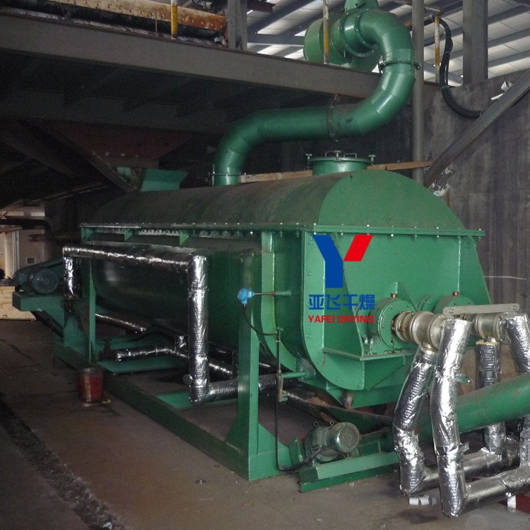 浆叶干燥机已成功地用于食品、化工、石化、染料、工业污泥等领域。设备传热、冷却、搅拌的特性使之可以完成以下单元操作:燃烧(低温)、冷却、干燥(溶剂回收)加热(融化)、反应和灭菌。搅拌浆叶同时又是传热面,使单位有效容积内传热面积增大,缩短了处理时间。楔型浆叶传热面又具有自清洁功能。压缩--膨胀搅拌功能使物料混和均匀。物料沿轴向成"活塞流"运动,在轴向区间内,物料的温度、湿度、混合度梯度很小。用导热油做热介质浆叶干燥机可完成低温燃烧工作。如:二水硫酸钙(Ca2SO4·2H2O) 燃烧转化为半水硫酸钙(Ca2SO4·1/22H2O)。碳酸氢钠(NaHCO3)经煅烧转化为纯碱(Na2HCO3)等。通入冷却介质,如水、冷却盐水等即可用来冷却。如:使用于纯碱行业的浆叶式凉碱机,取代老式的空气冷却凉碱机,节省了能源及尾气处理设备,降低了操作费用。干燥,设备*主要的功能,不使用热空气,使溶剂回收、能源消耗、环境控制处于易处理的理想状态。对需回收溶剂、易燃易氧化热敏性物料尤为适应。已广泛用于精细化工、石化、染料行业。轴向区间内,温度、湿度、混合度的均匀性,使得设备可用来加热或融化,或进行一些固体物料反应。在复合肥及变性淀粉行业均已成功使用。浆叶干燥机可用来对食物和面粉进行灭菌处理。单位有效容积内大的加热面积,很快就将物料加热到灭菌温度,避免了长时间加热而改变物料品质。