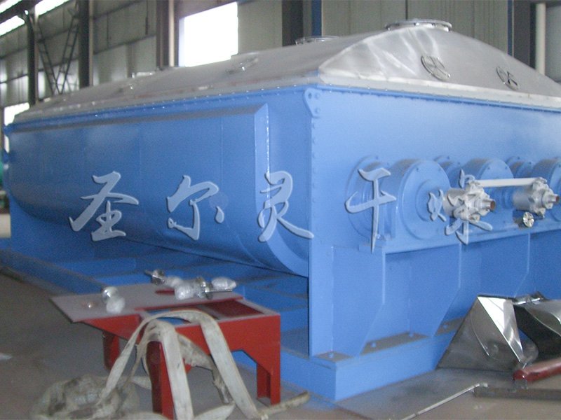 浆叶干燥机已成功地用于食品、化工、石化、染料、工业污泥等领域。设备传热、冷却、搅拌的特性使之可以完成以下单元操作:燃烧(低温)、冷却、干燥(溶剂回收)加热(融化)、反应和灭菌。搅拌浆叶同时又是传热面,使单位有效容积内传热面积增大,缩短了处理时间。楔型浆叶传热面又具有自清洁功能。压缩--膨胀搅拌功能使物料混和均匀。物料沿轴向成"活塞流"运动,在轴向区间内,物料的温度、湿度、混合度梯度很小。用导热油做热介质浆叶干燥机可完成低温燃烧工作。如:二水硫酸钙(Ca2SO4·2H2O) 燃烧转化为半水硫酸钙(Ca2SO4·1/22H2O)。碳酸氢钠(NaHCO3)经煅烧转化为纯碱(Na2HCO3)等。通入冷却介质,如水、冷却盐水等即可用来冷却。如:使用于纯碱行业的浆叶式凉碱机,取代老式的空气冷却凉碱机,节省了能源及尾气处理设备,降低了操作费用。干燥,设备主要的功能,不使用热空气,使溶剂回收、能源消耗、环境控制处于易处理的理想状态。对需回收溶剂、易燃易氧化热敏性物料尤为适应。已广泛用于精细化工、石化、染料行业。轴向区间内,温度、湿度、混合度的均匀性,使得设备可用来加热或融化,或进行一些固体物料反应。在复合肥及变性淀粉行业均已成功使用。浆叶干燥机可用来对食物和面粉进行灭菌处理。单位有效容积内大的加热面积,很快就将物料加热到灭菌温度,避免了长时间加热而改变物料品质。
