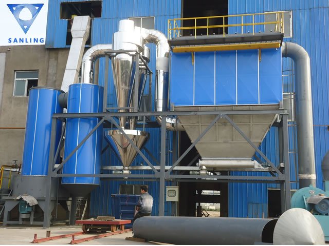 The clean heat medium heated by the heat source enters the drying chamber in a tangential form, its forms a powerful swirling flow with the mechanical stirring mechanism. The wet material is feted into the drying chamber quantitatively by the screw feeder, and is crushed and dried under the action of agitation and vortex airflow. The top of the drying chamber is provided with a particle size classifier. The fine powder meeting the requirements is discharged from the top of the column and collected by the back separator. The larger particles which are not meeting the requirements are blocked by the classifying ring and returned to the drying chamber. until these power meet the requirement, It will be discharged with the hot air from the drying chamber, collected by the separator. Clean exhaust released to the air by exhaust fan.